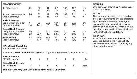 Pattern 6448 Aran King Cole