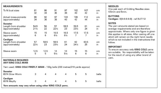 Pattern 6444 Aran King Cole