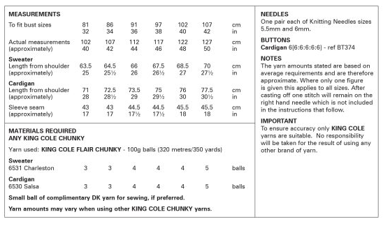 designed for Flair chunky. Yardage will differ for other yarns used.