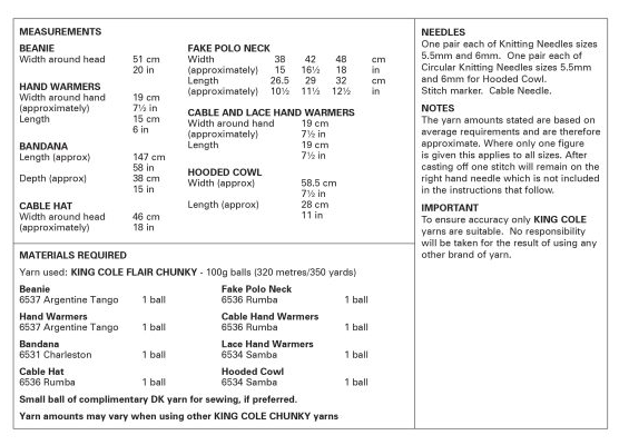 designed for Flair chunky. Yardage will differ for other yarns used.
